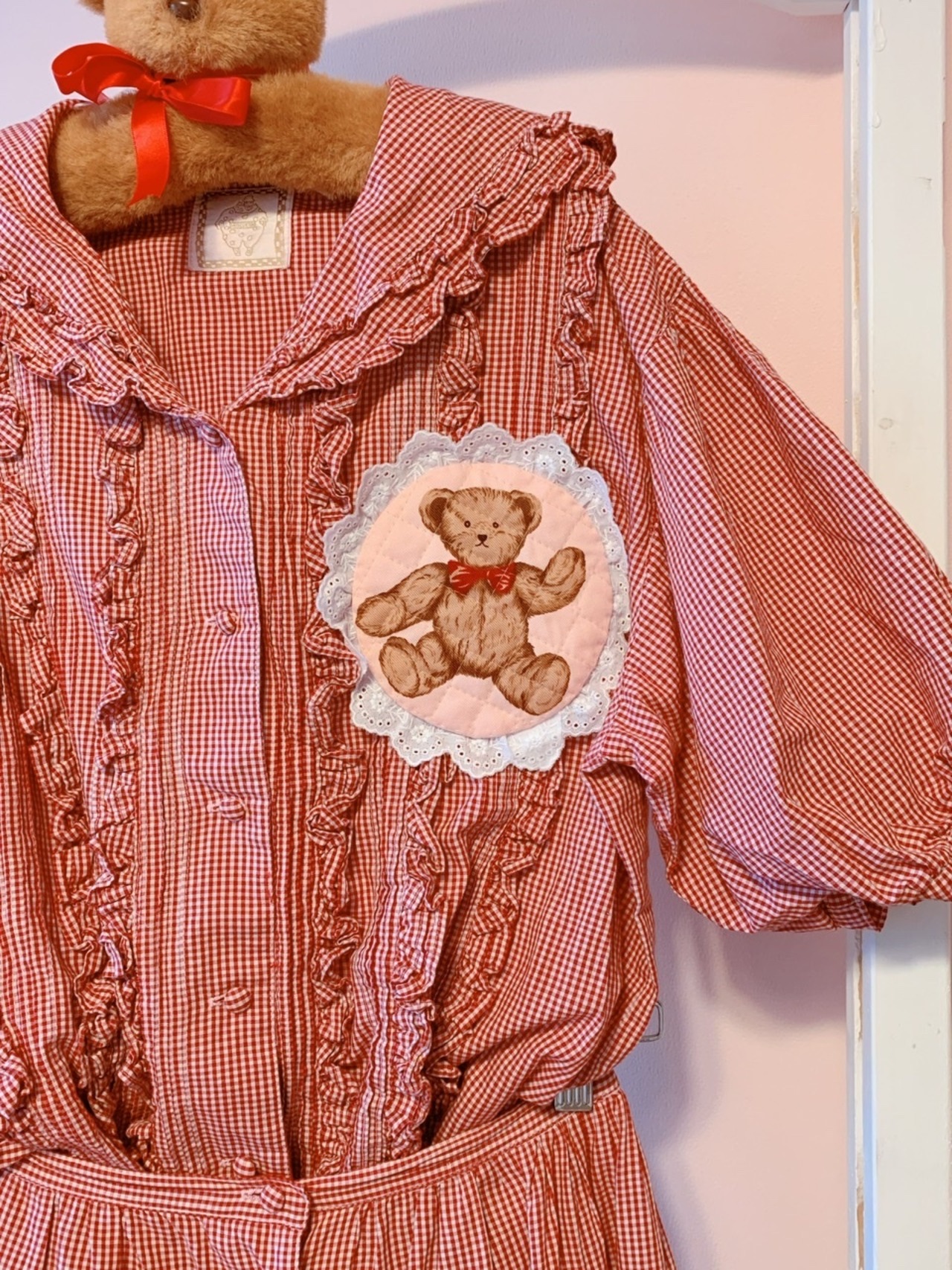 ギンガムチェックset くまちゃんパッチ