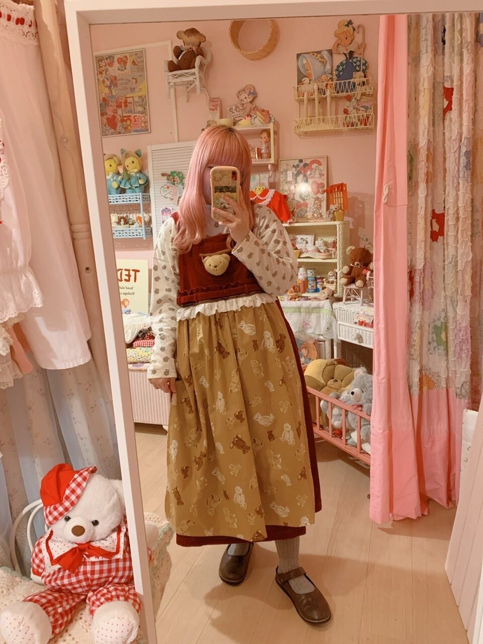 くまちゃん生地をつけてリメイクしました(ᵔᴥᵔ)